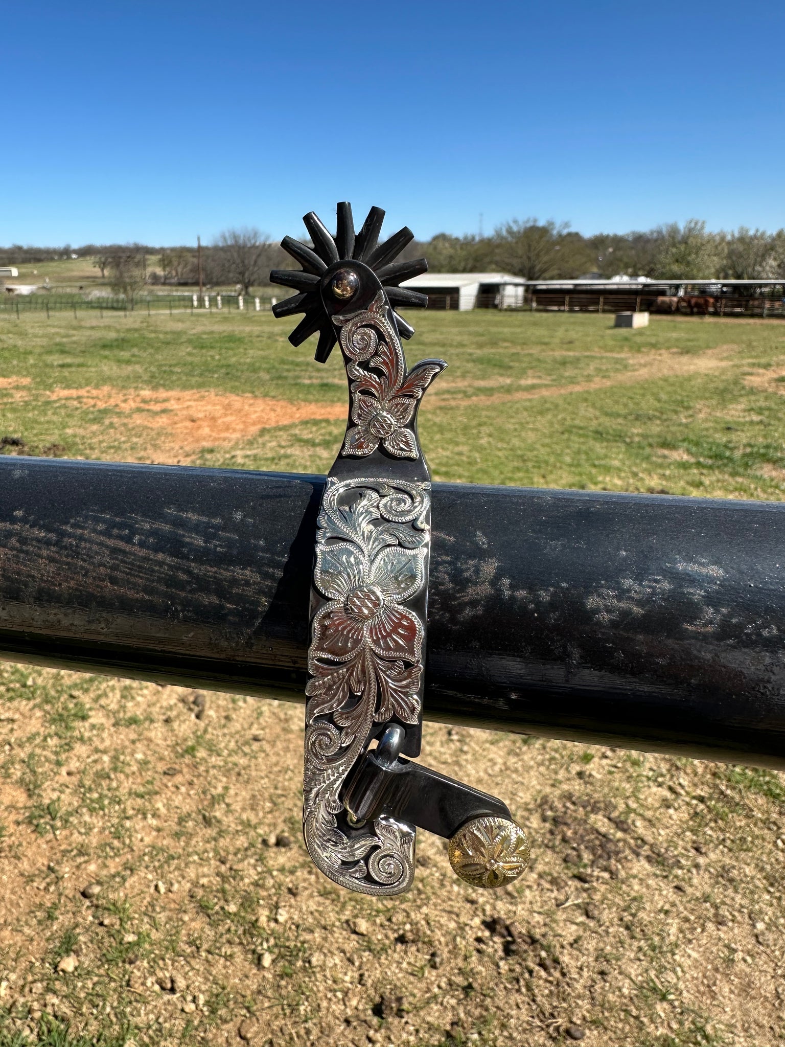 Note: Rancho Rodriguez spurs are not machine made. Our spurs are complete handcraftsmanship. Hand tooling/engraving is never perfect or identical on each spur. We DO NOT suggest any of our spur boot openings attempt to be opened or closed by hammering the spur bands. WE WILL NOT REFUND or EXCHANGE ON ANY USED SPURS!